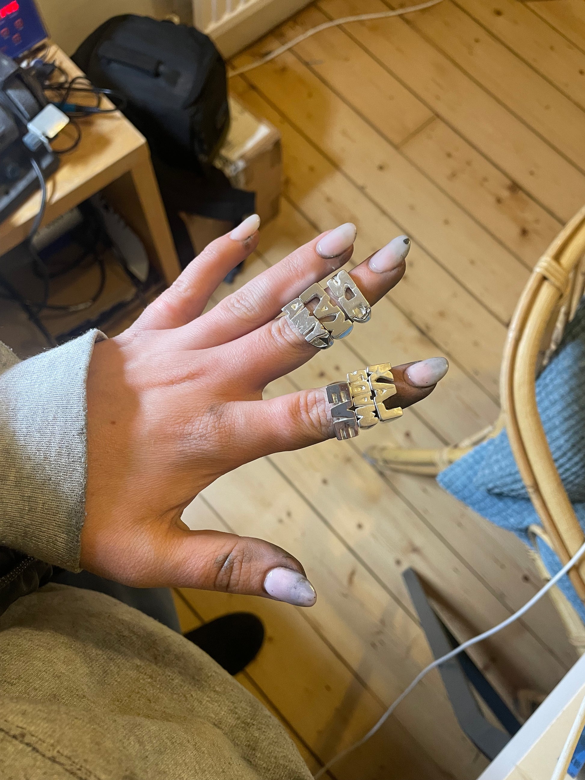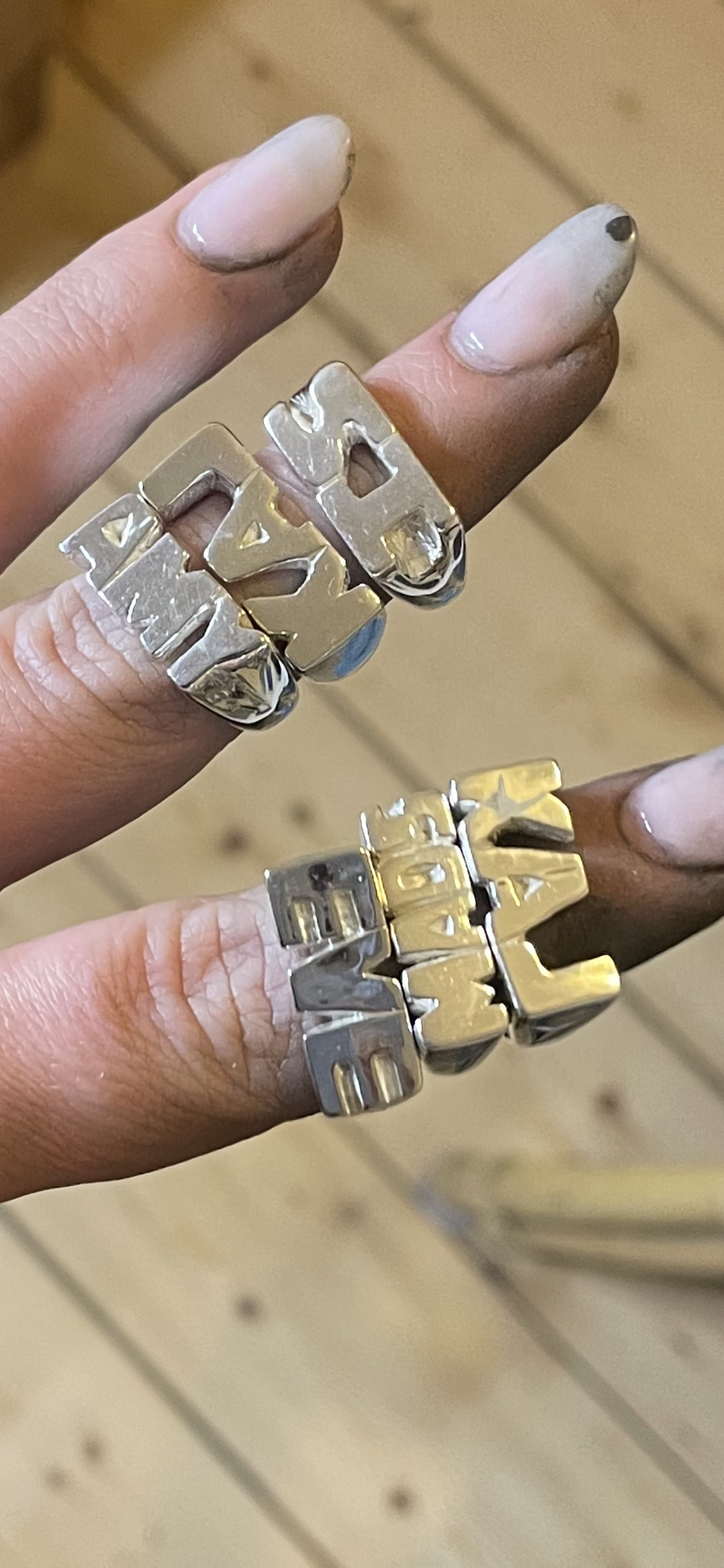 Each ring will vary slightly as they are handmade. For the ID ring I would recommend maximum 5 characters although would say they look best with 2-3.